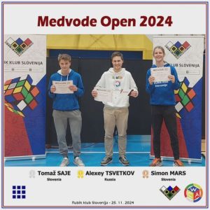 Na našem zadnjem tekmovanju v letošnjem koledarskem letu smo se zbrali v Smledniku na tekmovanju Medvode Open 2024. V odlični družbi 71 tekmovalcev smo se pomerili v sedmih najhitrejših WCA disciplinah.